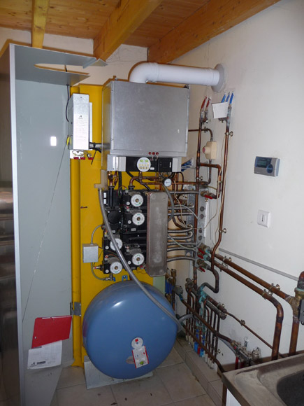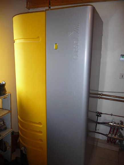 - au rez de chaussée : plancher chauffant, selon principe Plancher Solaire Direct (exclusivité Clipsol – c’est le même liquide qui circule dans les capteurs solaires et le plancher chauffant – pas d’échangeur intermédiaire)