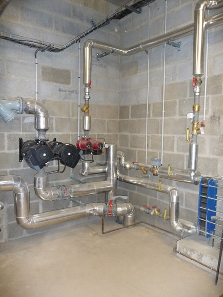 L'histoire entre la Commune de Guer et la chaleur bois commence en 1992 par une première étude de faisabilité d'un réseau de chaleur centré sur la piscine, étude réactualisée en 1998. Ce projet est alors motivé par la proximité de la forêt de Paimpont et la nécessité d'intervenir dans les peuplements résineux pour diminuer les risques d'incendies. Cette première tentative échoue et une nouvelle réflexion est amorcée en 2004, pour la seule piscine. La future création d'un groupe scolaire est finalement l'occasion d'installer une chaufferie centrale bois, afin d'alimenter la piscine bien sûr, mais également la maison de retraite voisine, le groupe scolaire et la maison de l'enfance, et à terme, le restaurant scolaire.