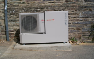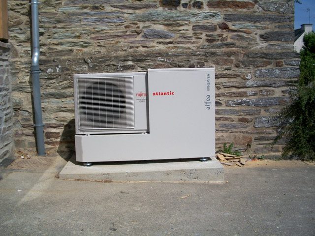 Chauffage de la partie rénovée assuré par un plancher chauffant et une pompe à chaleur Inverter monobloc (marque Atlantic - gamme Alféa M)