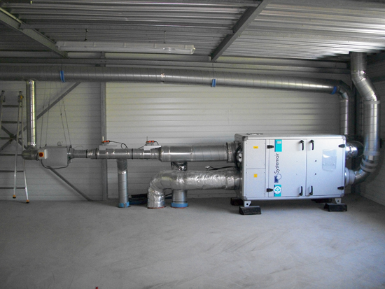 Chauffage par plancher chauffant et pompe à chaleur aérothermie Ventilation double flux pour les bureaux, simple flux ou double flux (selon occupation) pour les sanitaires Eau chaude sanitaires par capteurs solaires Plomberie Sanitaires