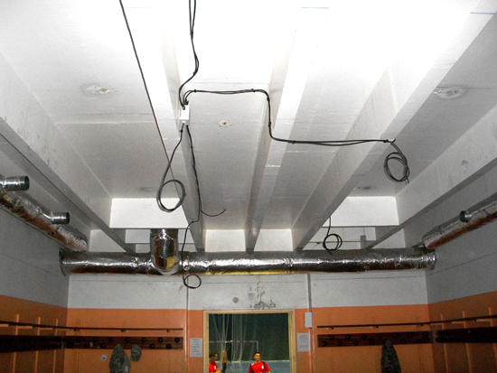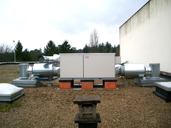 Installation d’une ventilation double-flux haut rendement dans les vestiaires du Gymnase de Coëtquidan.